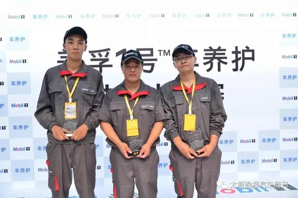 2017年美孚1號(hào)車養(yǎng)護(hù)技能大師賽前三名技師合影